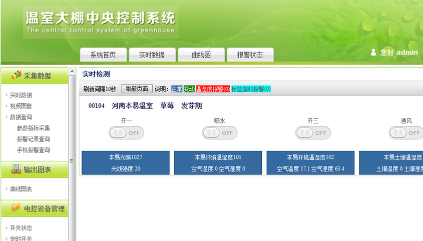 本系統(tǒng)采用RFID及物聯(lián)網(wǎng)技術(shù)建立核心體系架構(gòu),并以公共云計算模式為用戶提供大棚種植業(yè)務(wù)的全面信息服務(wù)及決策服務(wù)。實現(xiàn)全面監(jiān)測、智能分析、科學(xué)指導(dǎo)一體化的大棚應(yīng)用服務(wù)平臺。項目通過實時采集并檢測溫室內(nèi)的各項參數(shù)指標(biāo),從而實現(xiàn)智能化控制溫室內(nèi)各電控設(shè)備的開關(guān);同時通過設(shè)置安全閾值,實現(xiàn)了超出閾值的警報的功能。