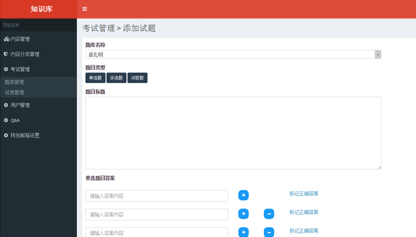 知識庫系統(tǒng)用來幫助朝陽財富公司理財師了解并熟悉本公司的產(chǎn)品及其金融行業(yè)相關(guān)知識。系統(tǒng)基于微信企業(yè)號開發(fā),實(shí)現(xiàn)了理財師在移動端的知識庫查詢,在線答題考試,在線問答(Q&A)等。系統(tǒng)后臺用來管理知識庫內(nèi)容,考試題庫和企業(yè)號用戶管理等。